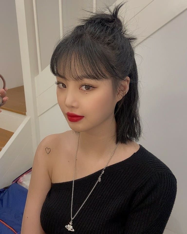- 한(一)에서 새빨간 색으로 염색을 했는데, 팬들의 반응이 엄청났습니다. 그래서 에리얼이라는 별명이 생겼습니다. 빨간머리로 염색을 한 후 머릿결이 상해 다시 흑발로 돌아왔다고 합니다. 그런데 I trust 때는 금발로 컴백했고, 활동 3주차에는 파란색으로 염색했다! 이 때문에 ‘인간 블루베리’라는 별명이 생겼습니다. 염색한 이유는 금발을 위해 잦은 탈색을 거치며 뿌리탈색을 할 수 없는 상태가 되었기 때문입니다. 브이앱에서 활동이 끝나자마자 흑발로 바꿀 예정이라고 언급했고, 활동 4주차에 다시 흑발이 되었습니다. 활동 종료 후에는 처음으로 중단발을 했습니다.